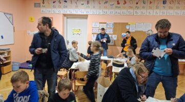 Učenci so težko pričakovali popoldansko srečanje v šoli, ker je bila napovedana bralna čajanka in ustvarjanje za otroke in predavanje o branju za starše. Knjižničarka Tanja Repnik je otrokom pripovedovala pravljico Volčja šola, v kateri mali volk ni hotel hoditi v volčjo šolo, kjer se učijo grdih besed in obnašanja, ampak v navadno šolo. Po poslušanju pravljice je sledila delavnica, v kateri so si izdelali zelo poučno in uporabno namizno igrico. Ko so starši končali s poslušanjem predavanja o branju, so se pridružili otrokom in jim pomagali dokončati igrico. Zraven so pili topel čaj in se tako pogreli.