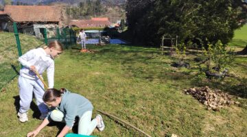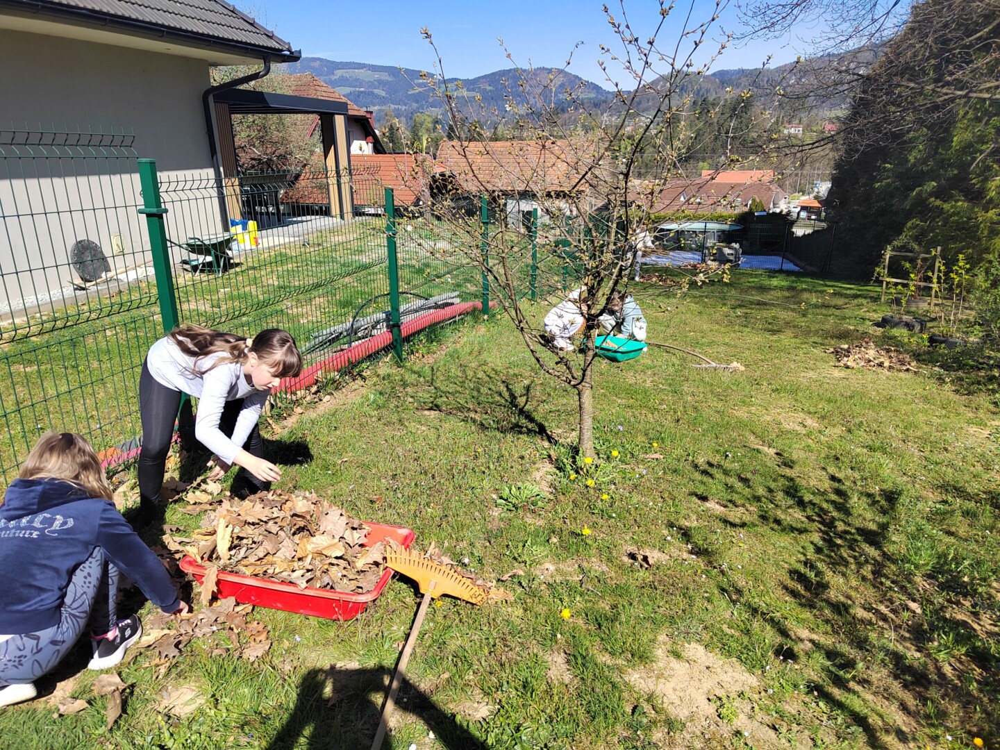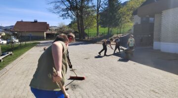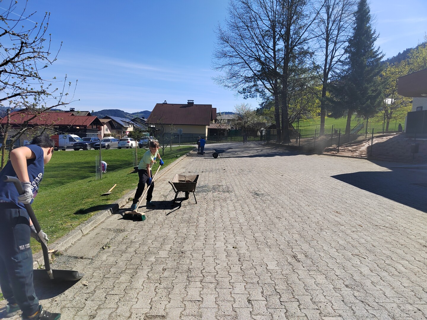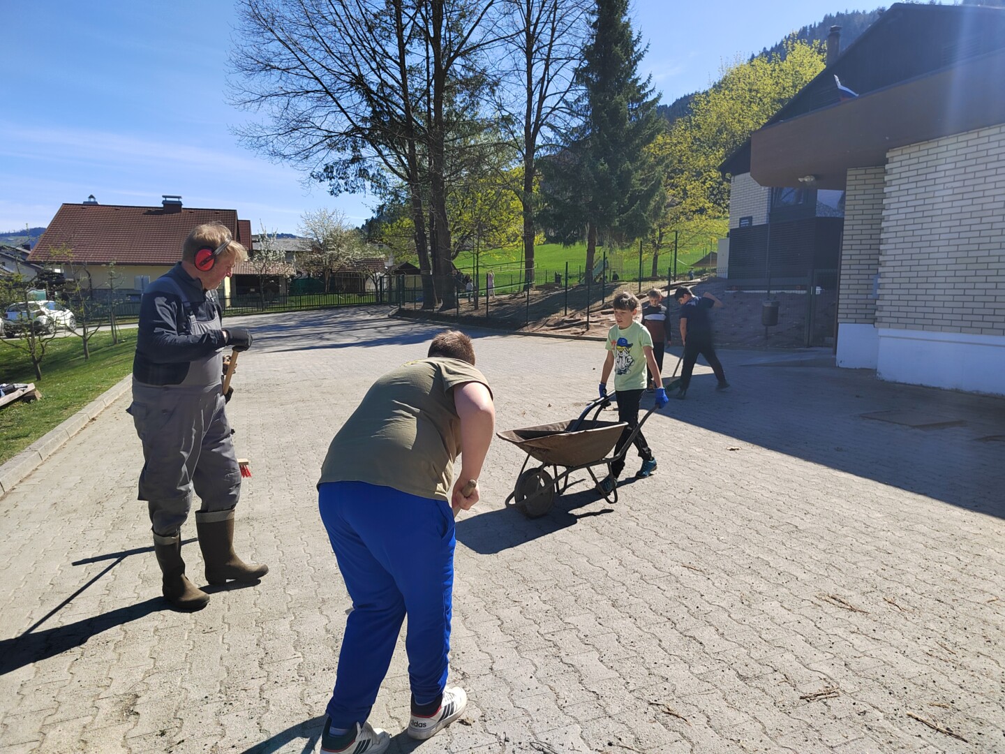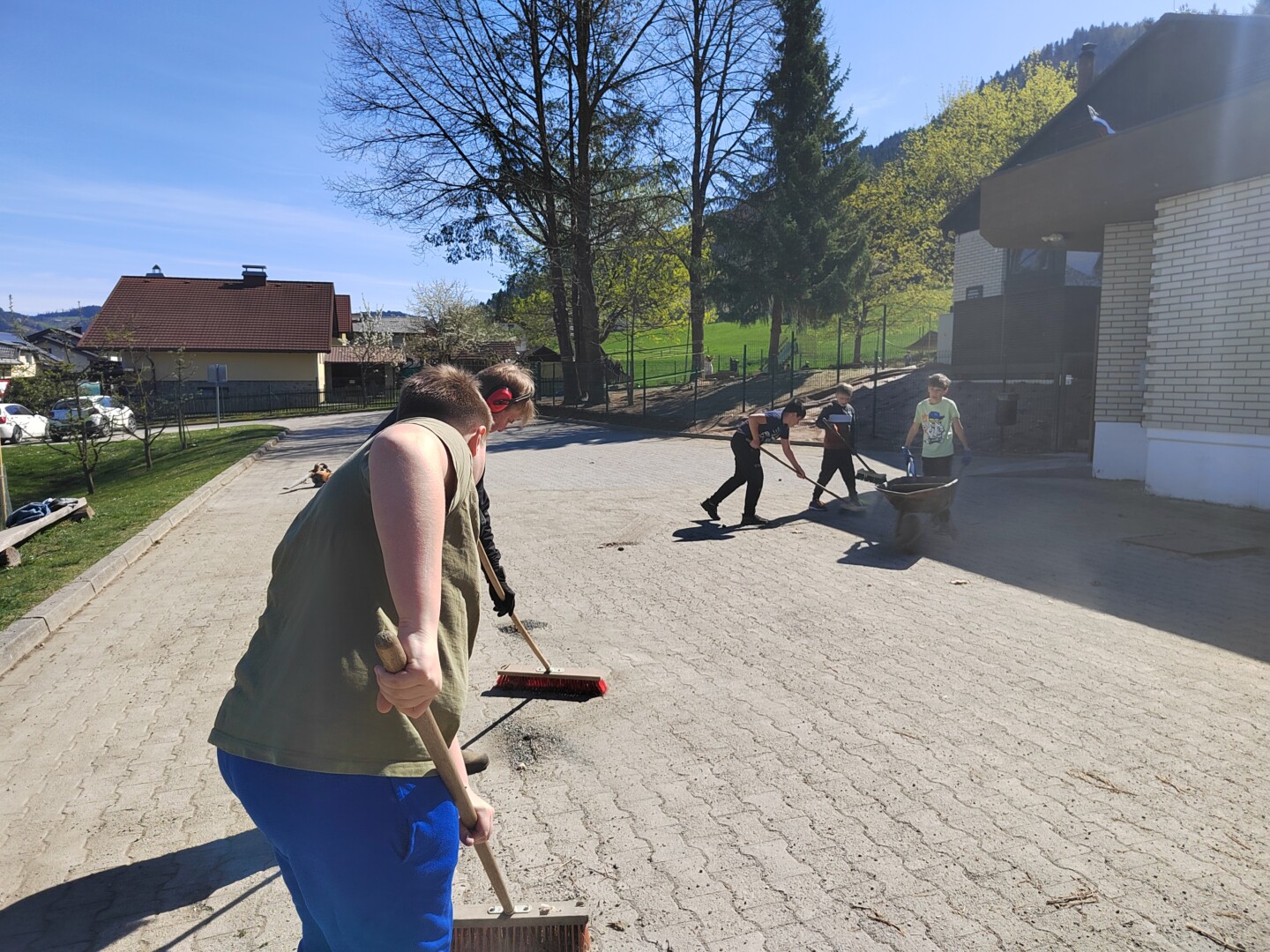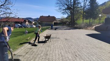 V četrtek, 9. 4. 2026, smo imeli čistilno akcijo. Potrebno je bilo pomesti parkirišče pred šolo, pobrati papirčke in kamne na igrišču ter pograbiti še zadnje suho listje, ki se je skrivalo med grmički in ograjo. Četrto in petošolci so delo opravili zelo natančno, delali so zavzeto in poskrbeli skupaj s hišnikom, da je okolica naše šole lepa in čista.