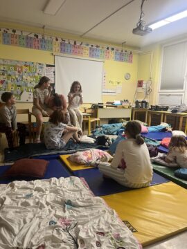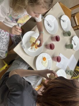 Skupaj so pripravili zelo okusno večerjo, popoldan in večer pa so obogatili še z dramskimi vložki, zabavnimi igrami in večernim branjem. Zjutraj so jih zbudili lačni trebuhi, zato so se z velikim veseljem lotili še priprave okusnega zajtrka. Ob tem so pokazali veliko samostojnosti, sodelovanja in kuharske domišljije. Vzdušje je bilo sproščeno, polno smeha in dobre volje.