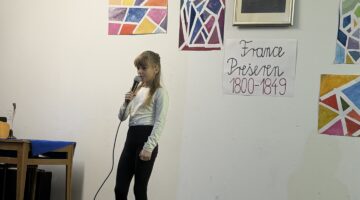 Ob zaključku prireditve je sledila podelitev priznanja Prešernovo pero za najlepši prepis besedila. Letošnja prejemnica je osmošolka Aneja Podrzavnik, ki si je nagrado prislužila s skrbnim in estetsko dovršenim delom.