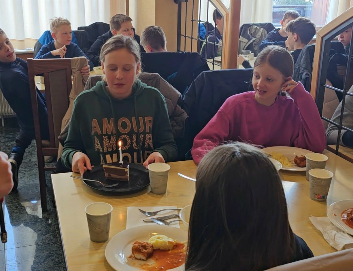 Tretji dan smo se prebudili v hladno in sončno jutro. Dopoldan in popoldan smo preživeli na smučišču. Med kosilom smo prijetno presenetili naša sošolca, kis ta praznovala rojstni dan. Pred večerjo smo se nekateri ogreli v športni dvorani ali zaplavali v bazenu. Pred spanjem smo pripravili zanimivo predstavitev za jutrišnji zaključni večer.